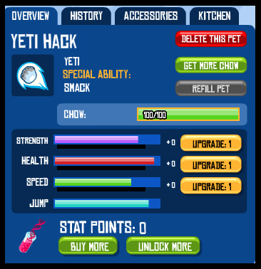 Aqui algunas imagenes: Pet ![]() Habilidad y estadistica ![]() Pasos Importantes: ![]() Nota: En el video el navegador ya esta seleccionado, para que no se confundan OJO¡¡¡ CUANDO SE HACE EL HACK SOLO SE PUEDE COMPRAR UNA VEZ EL YETI NO DOS¡¡¡ Video: |